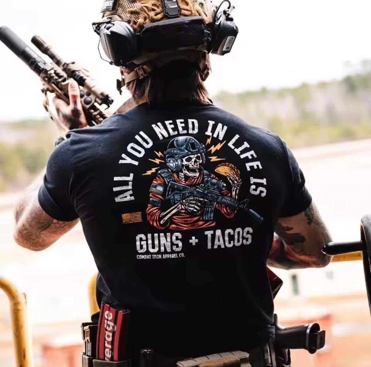 【希少】Combat Iron Apparel スカル Tシャツ ガン&タコス 黒