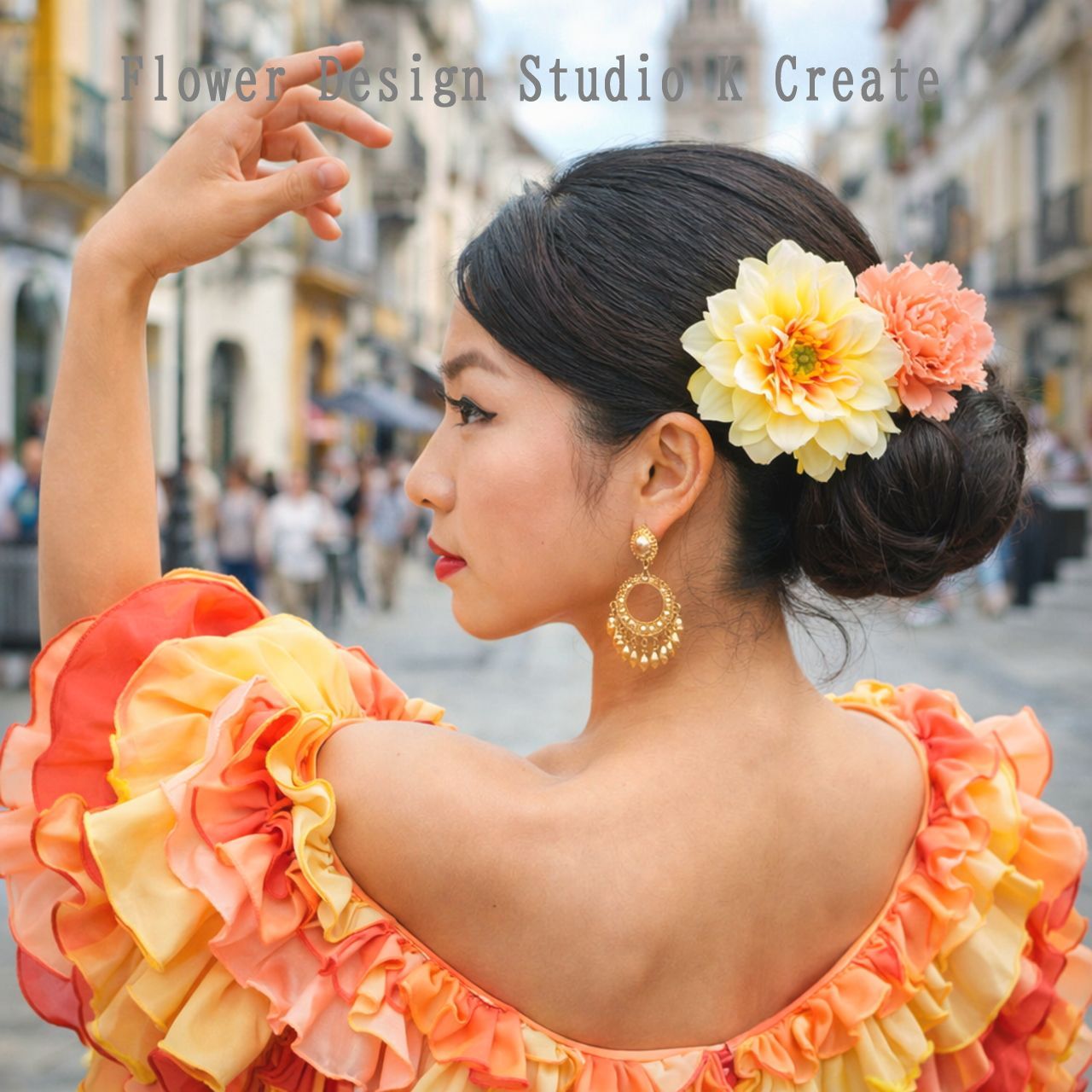 イエローのピオニーの髪飾り 黄色 推し色 花 発表会 髪飾り フローレス ダンス フラメンコ