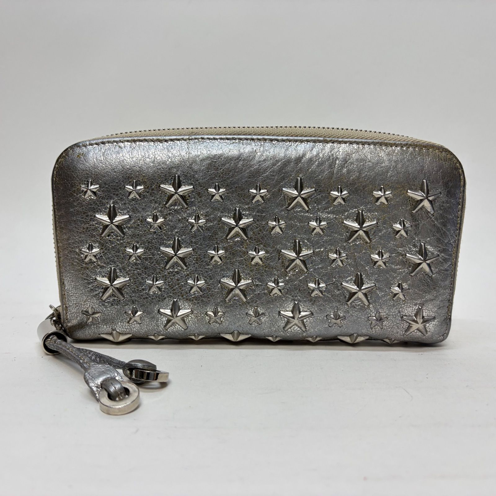 3768 ジミーチュウ 長財布 スタッズ ラウンドファスナー シルバー