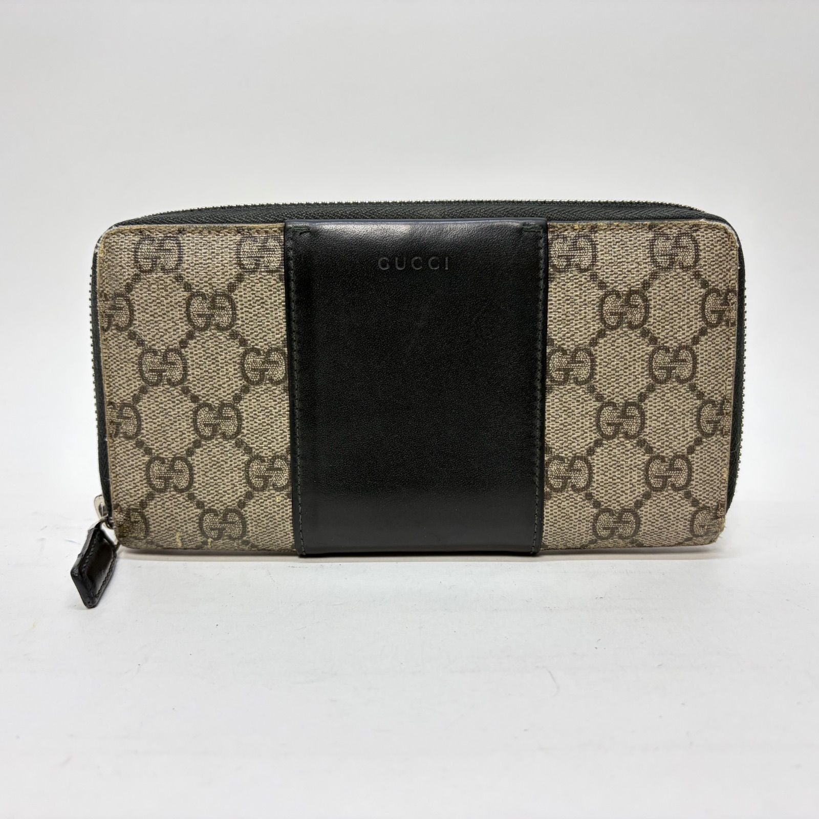 4080 GUCCI グッチ 長財布 GG スプリーム ラウンドファスナー ブラック レザー