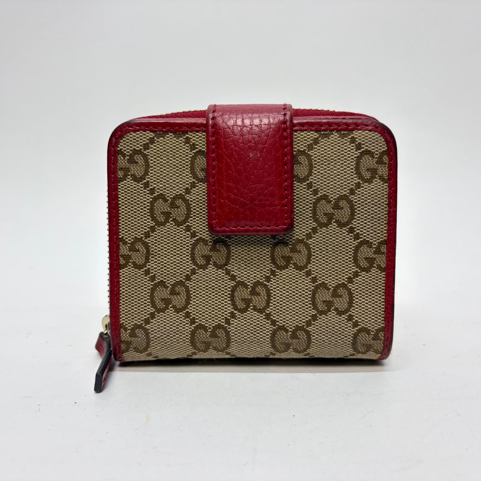 4071 GUCCI グッチ 折り財布 GG キャンバス コンパクトウォレット レッド レザー