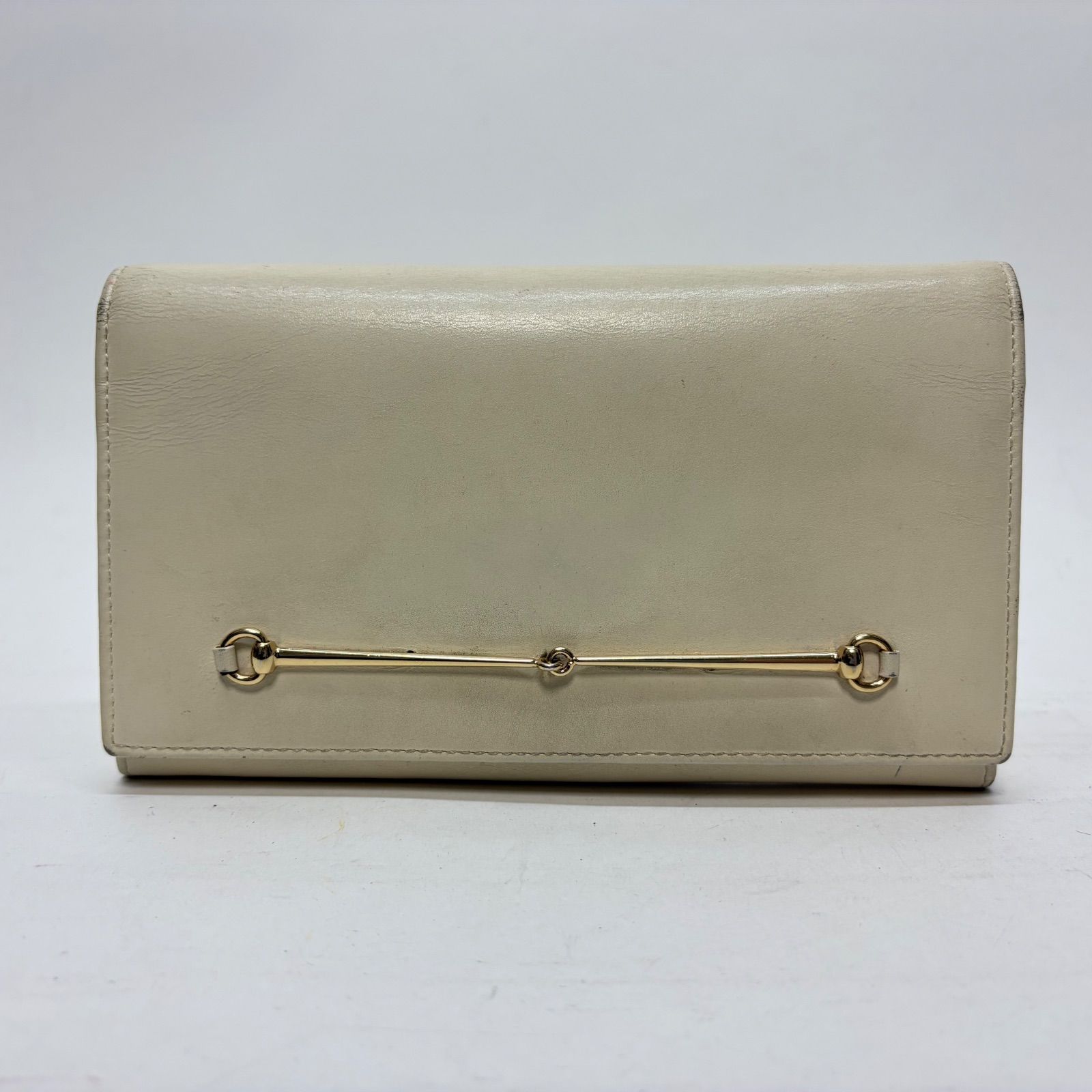4082 GUCCI グッチ 長財布 ホースビット ホワイト レザー フラップ