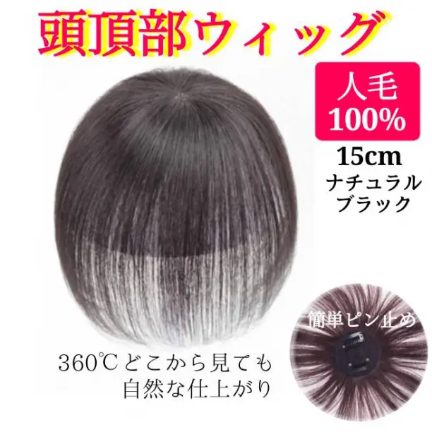 匿名配送 頭頂部ウィッグ ブラック 15㎝ ナチュラル 部分かつら ヘアピース人