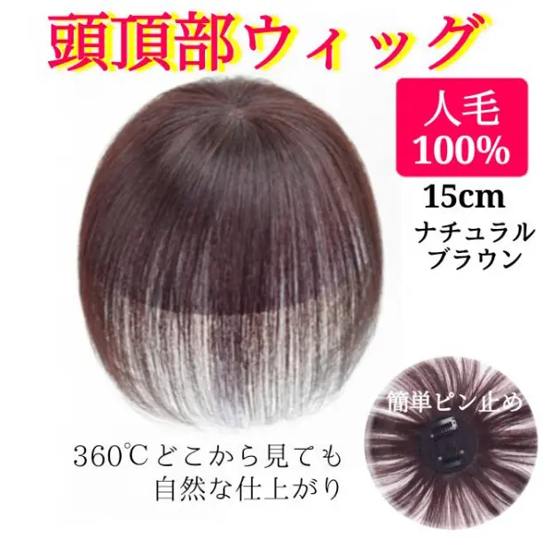 頭頂部ウィッグ ブラウン 15㎝ ナチュラル 部分かつら ヘアピース 最安値!限