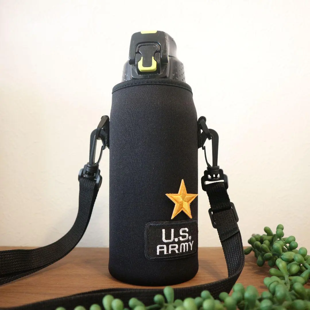 ☆水筒カバー☆ 1リットル 1000ml S 水筒ケース 黒色+US ARMY
