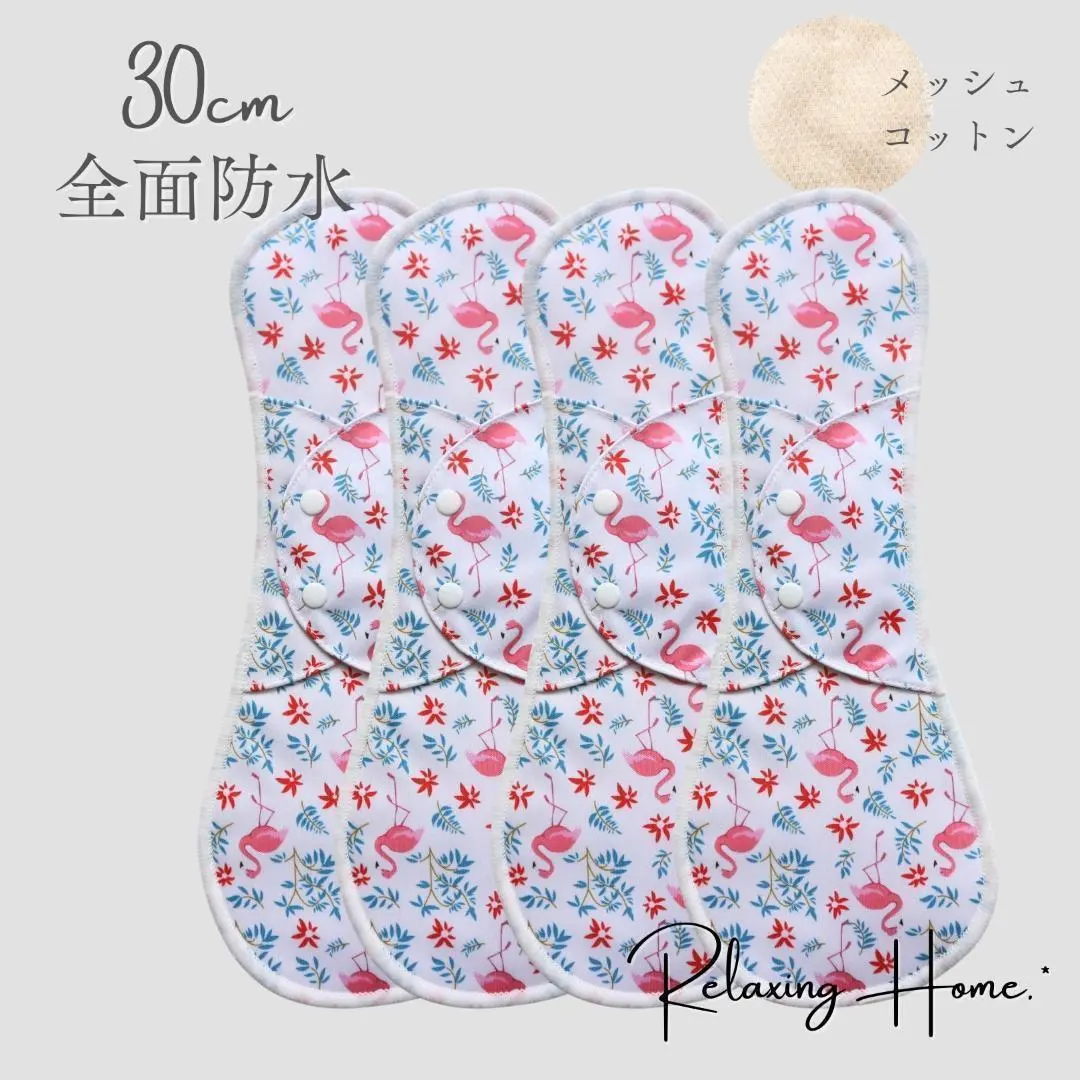 布ナプキン30㎝4枚 多い日(昼)普通の日(昼・夜) 一体型防水あり フラミンゴ