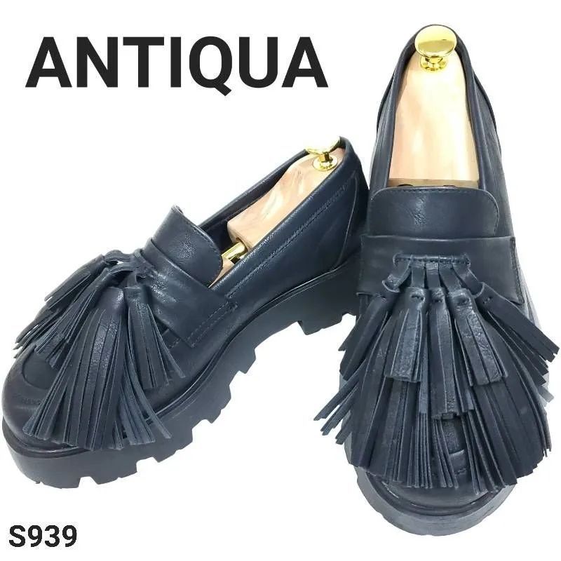 アンティカ 美品 ボリューミータッセルローファー 厚底 シボ感 ブラック レザー