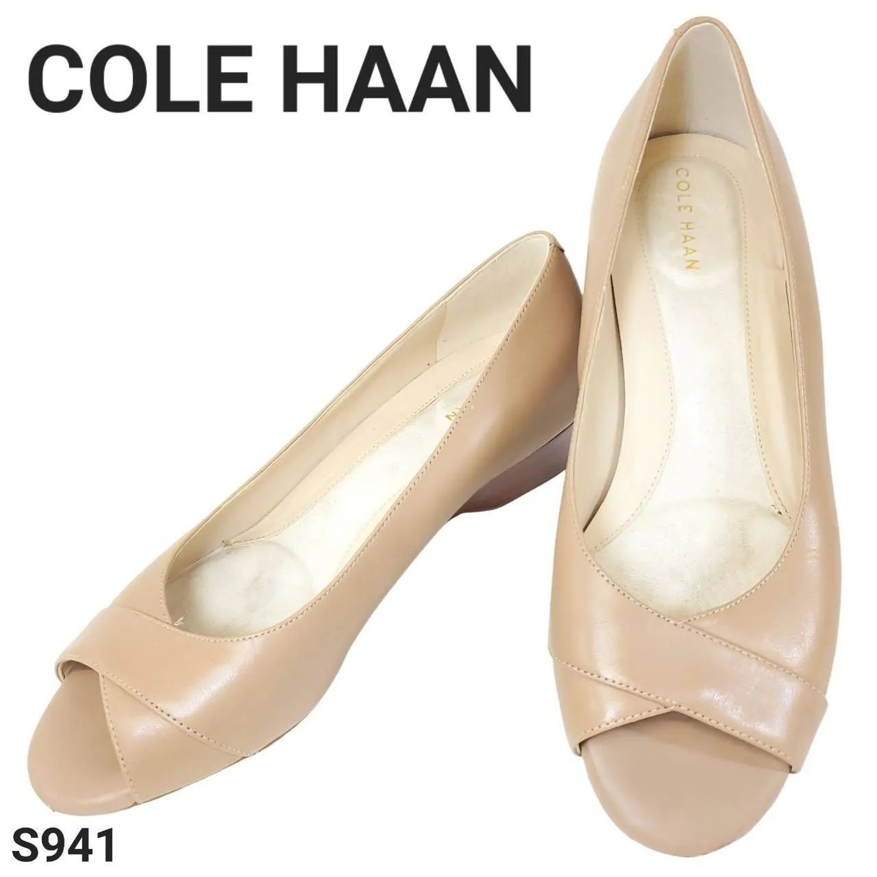 コールハーン オープントゥパンプス クロス ウェッジソール ベージュ レザー