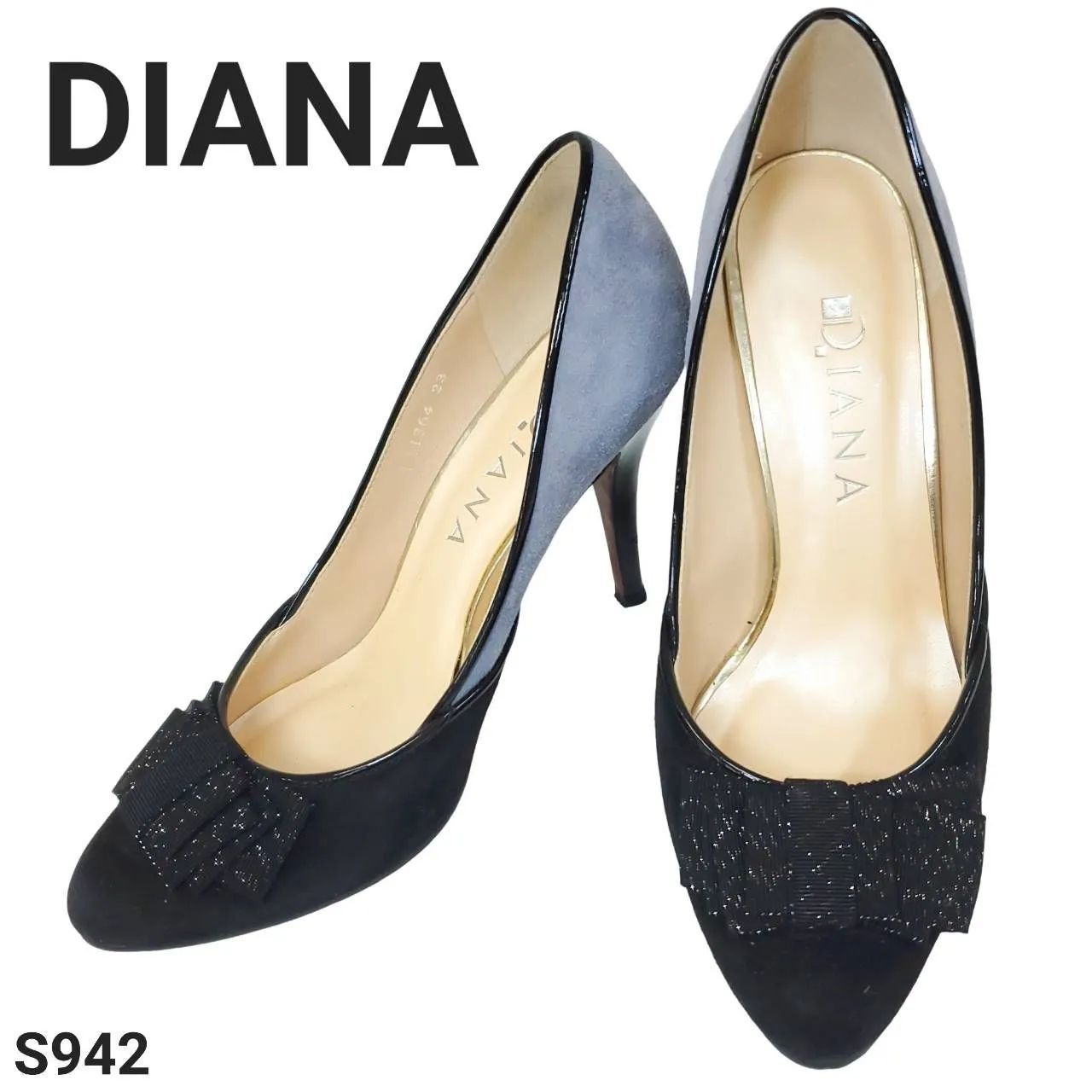 美品 ダイアナ レッドソール リボン オープントゥ バイカラー スエード