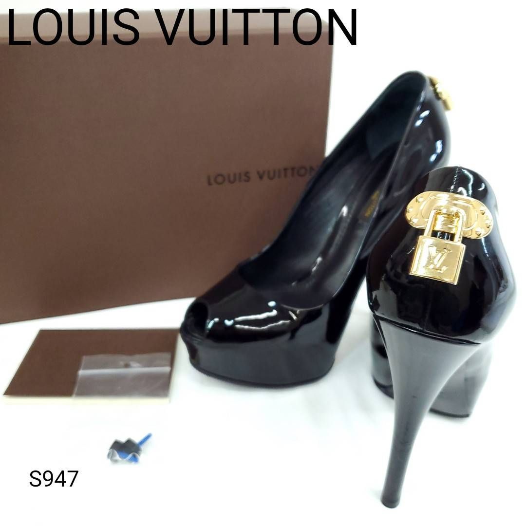 美品 激レア廃盤モデル ルイヴィトン パドロック カデナ オープントゥ LVロゴ ブラック エナメル