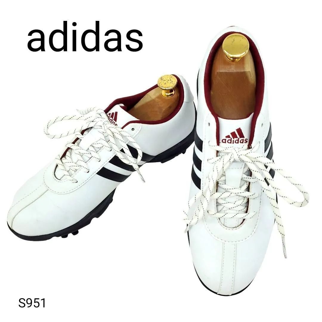 アディダス 23.5cm ゴルフシューズ スリーストライプス ロゴ ホワイト レザー