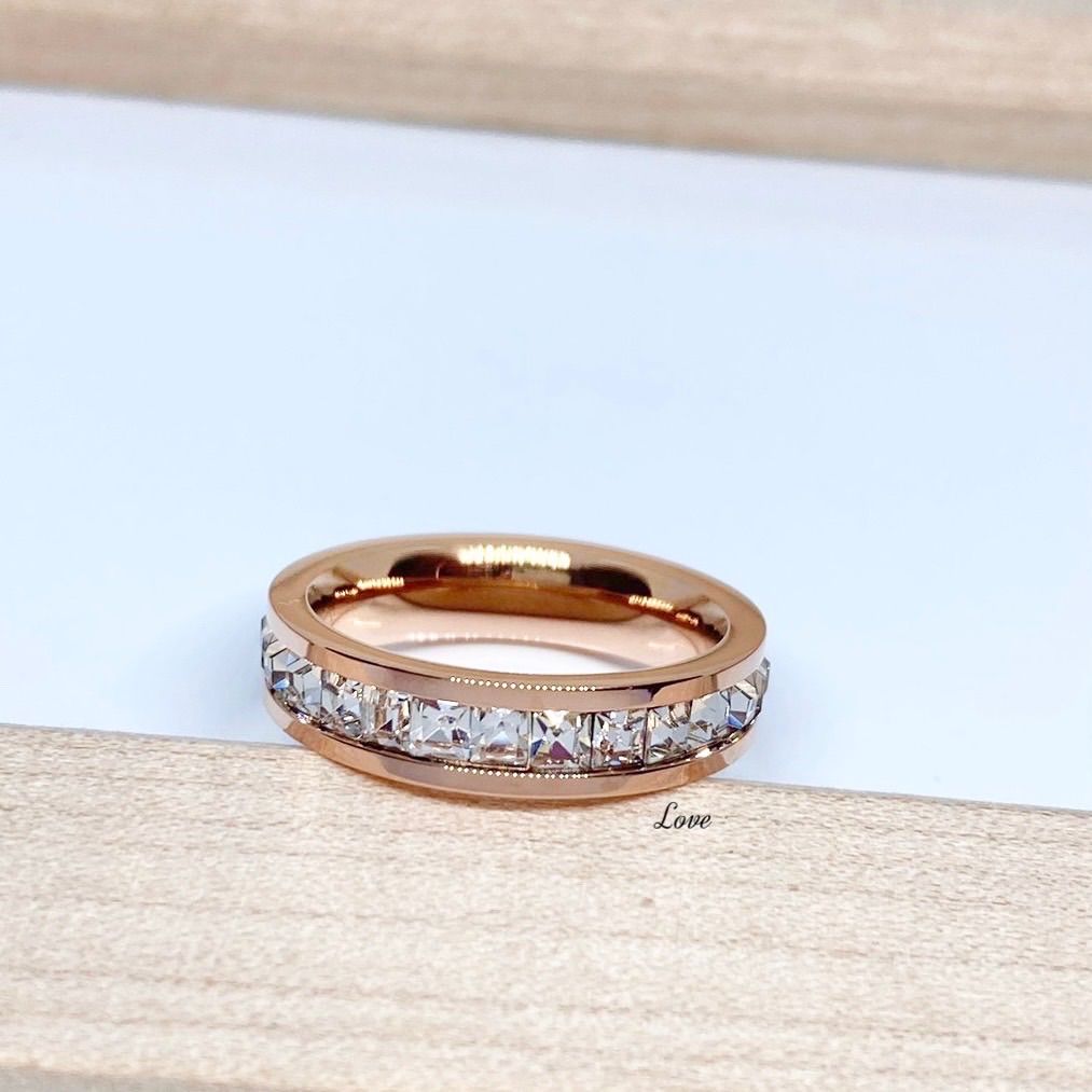 全キラ ステンレスリング ステンレス指輪 ピンキーリング フルエタニティ ピンク