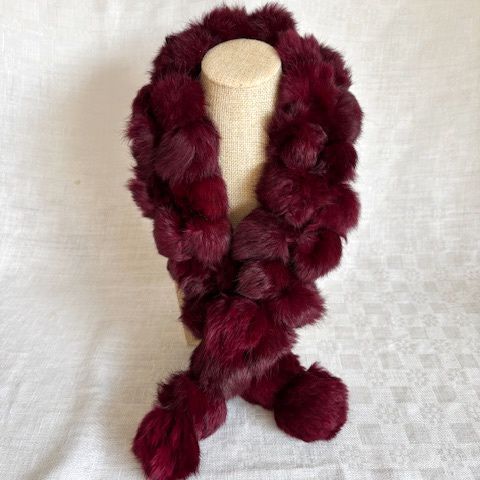 ファー襟巻 ラビットファー マフラー レッド えんじ色 ワインレッド ぼんぼり 12acdz51