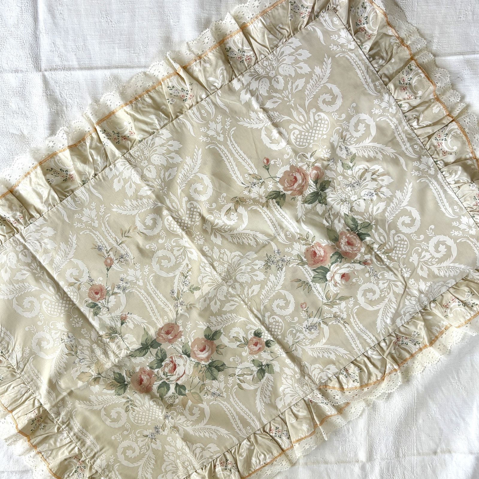 ピローケース フレンチカントリー 花柄 フリル付き 未使用品 リメイク ハンドメイド生地 12clce16