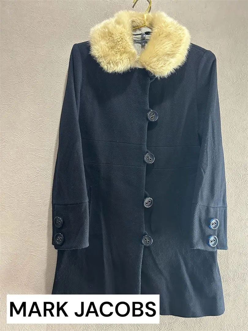 2way★MARK JACOBS★ネイビーファー付きロングコート定価10万
