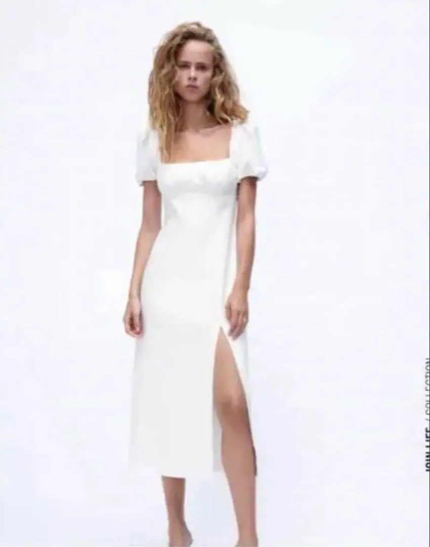 新品タグ付き★ZARA★ホワイト 肩出しロングパフスリーブワンピース