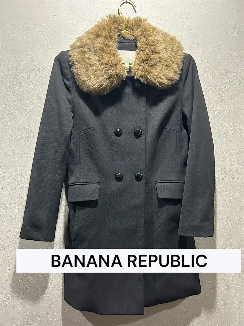 美品★BANANA REPUBLIC★黒 ファー取外し可ロングコート S