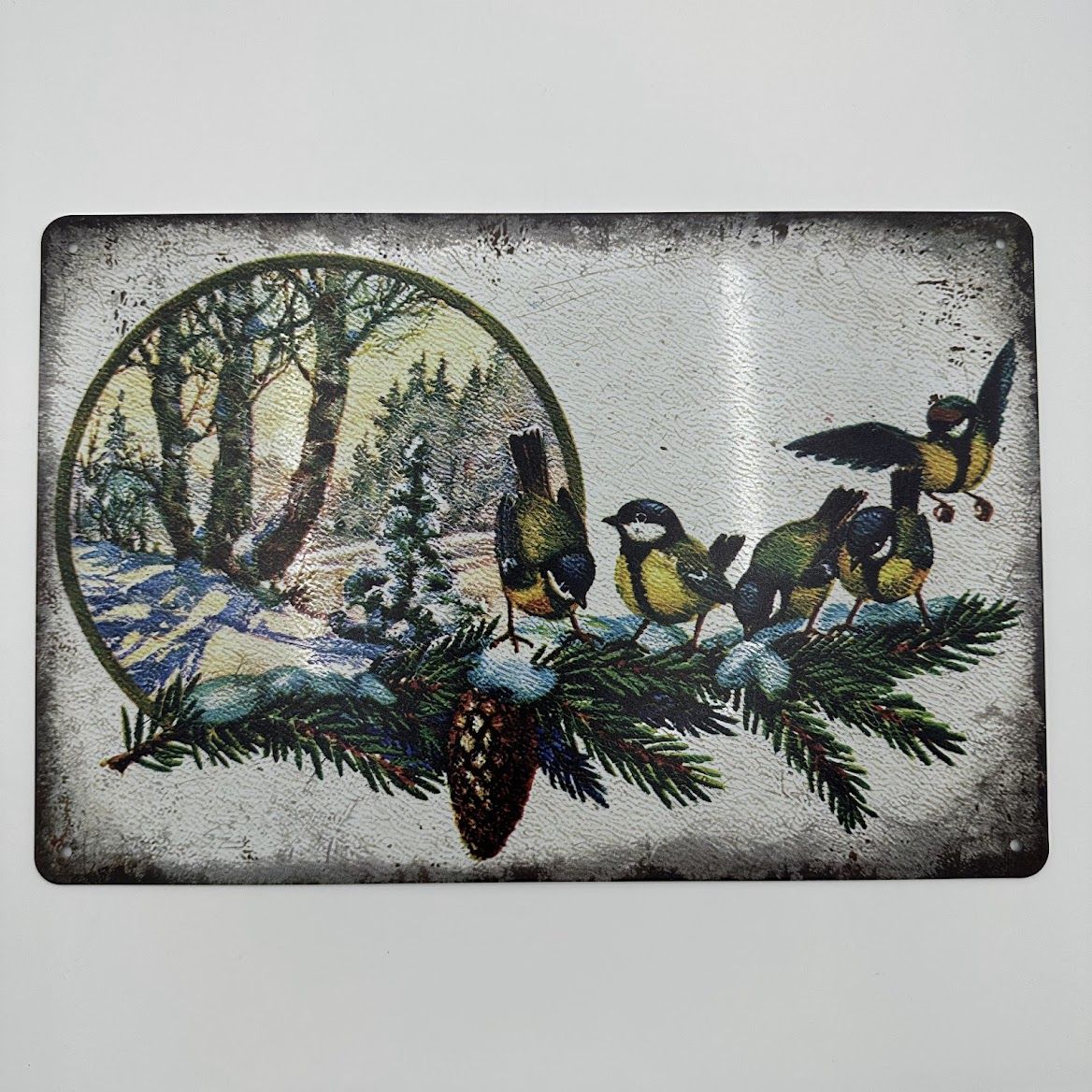 新品 ブリキ看板 冬景色と小鳥 レトロ デコレーション 壁飾り おしゃれ インテリア