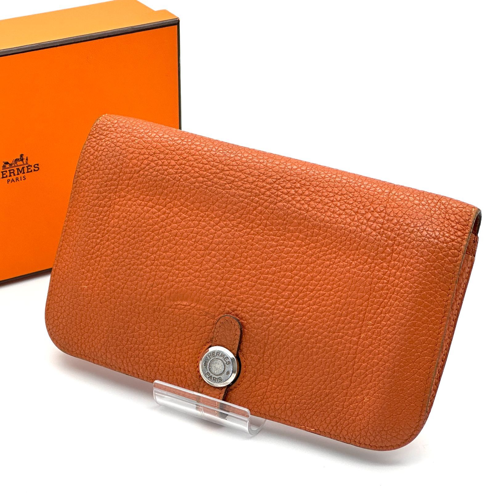 【極美品】HERMES エルメス ドゴンGM □G刻印 オレンジ 長財布