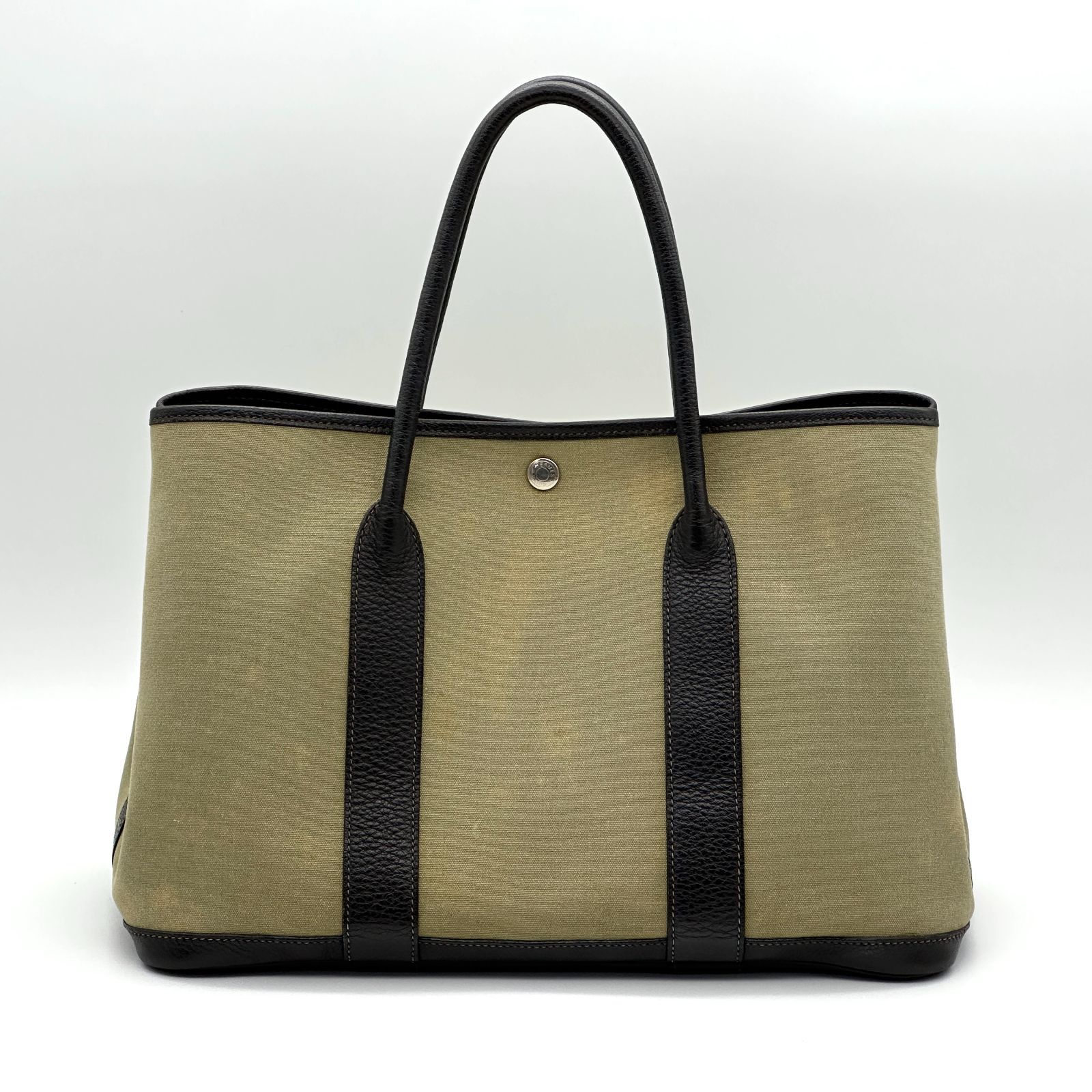 【美品】エルメス ガーデンパーティ PM カーキ □C トートバッグ