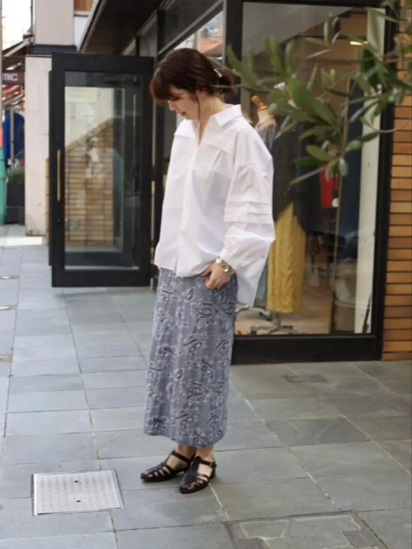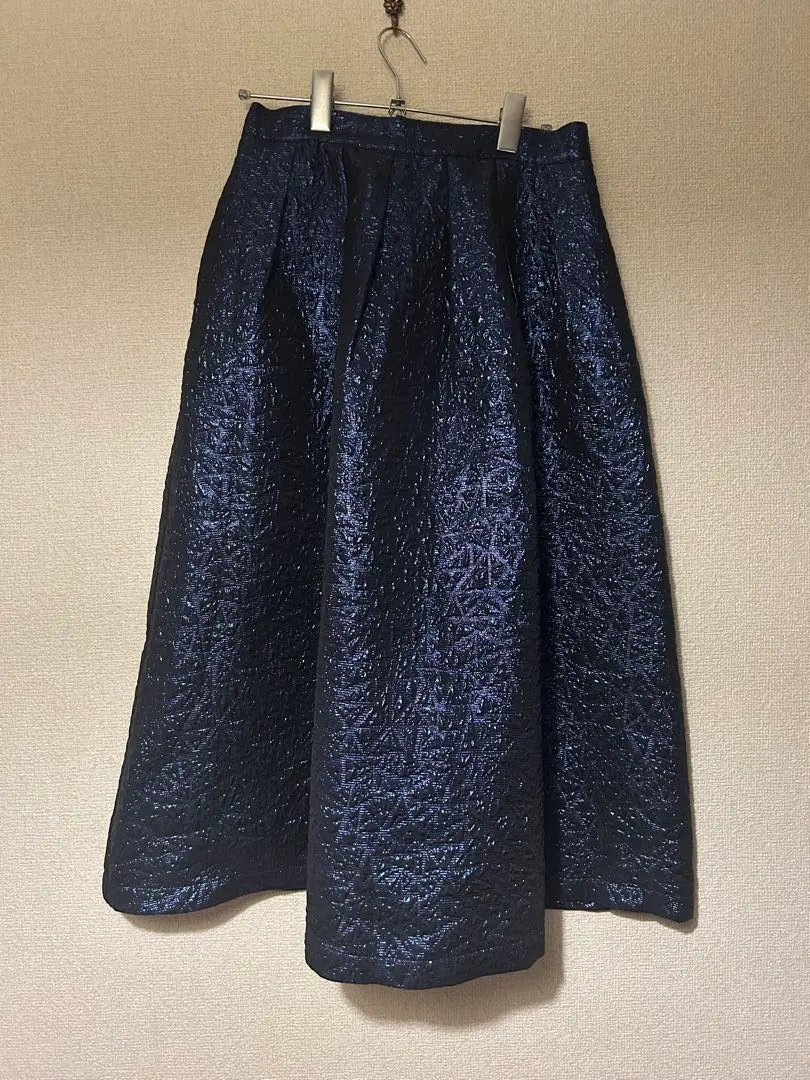 フレアスカート ネイビーブルー光沢 エンボス加工