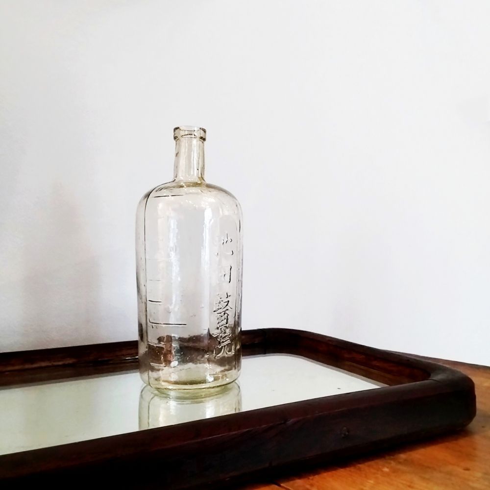 大正~昭和初期 薬瓶 ガラス瓶 池田医院 目盛付き 気泡 アンティーク ヴィンテージ 骨董 古道具 レトロ 花瓶 インテリア