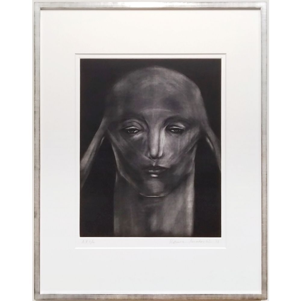 舟越桂 眠らないスフィンクス 2013年 メゾチント 銅版画 直筆サイン 美術作品 額縁 極希少 真作