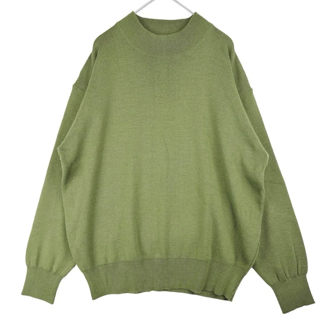1757【美品】ニット セーター 長袖 ハイネック ラム混 抹茶 グリーン 日本