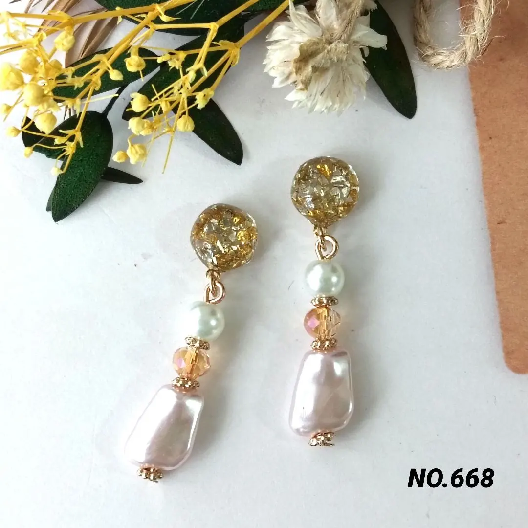 NO.668 ピアス イヤリング ストーン パール 揺れる レジン ハンドメイド