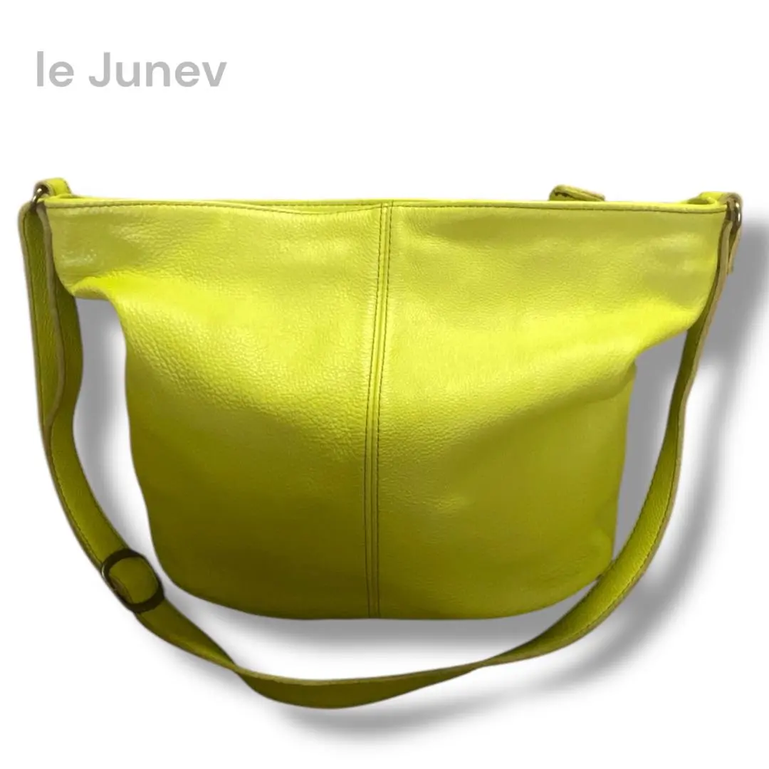 le Junev たっぷり入る 本革ライムイエローのショルダーバッグ