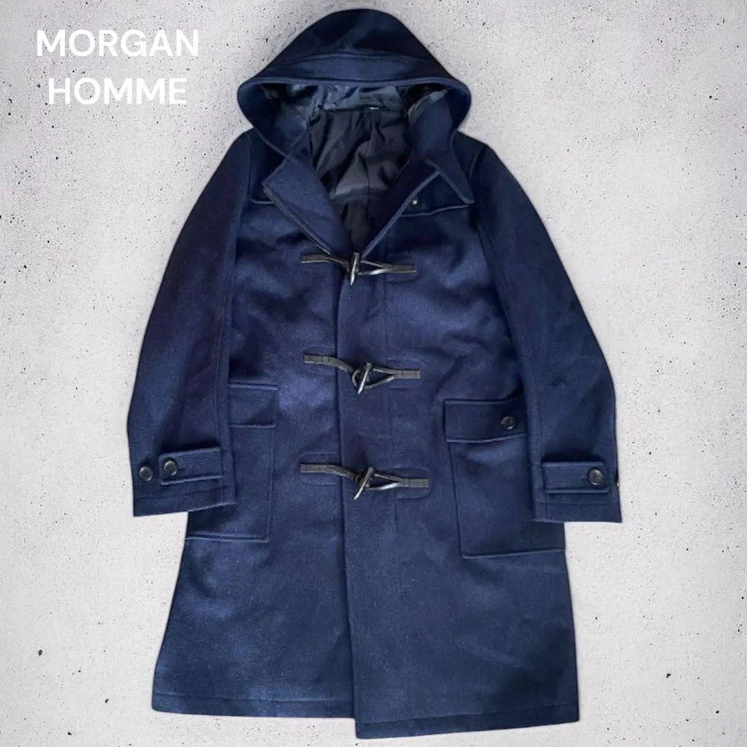 【美品】MORGAN HOMME ネイビー ダッフルコート Lサイズ ウール混