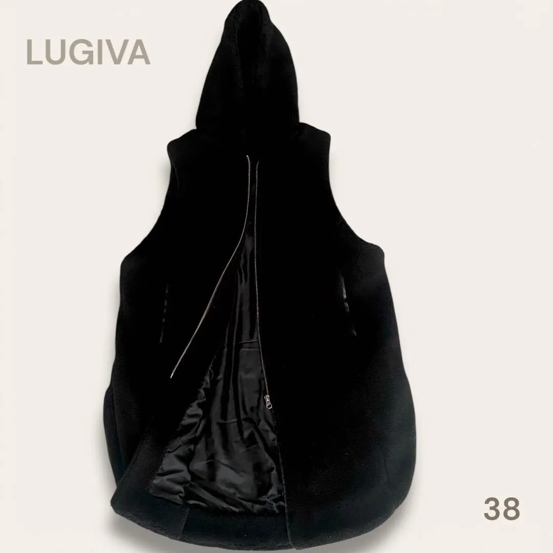【暖かい】LUGIVA ノースリーブボアロングジャケット ブラック 38
