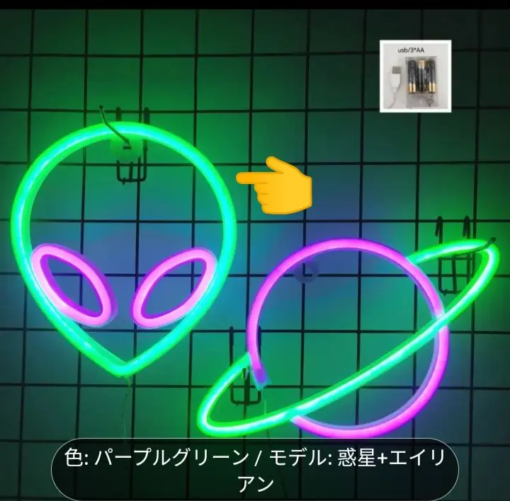 エイリアンネオンライト 1点 電池 USBタイプ ルームライト ネオンライト