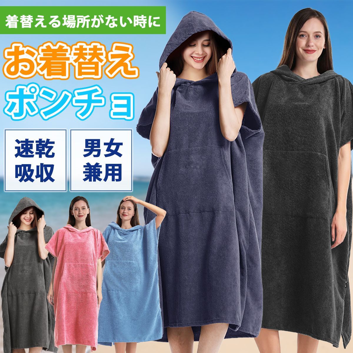 お着替えポンチョ タオル生地 レディース メンズ サーフィン 海水浴