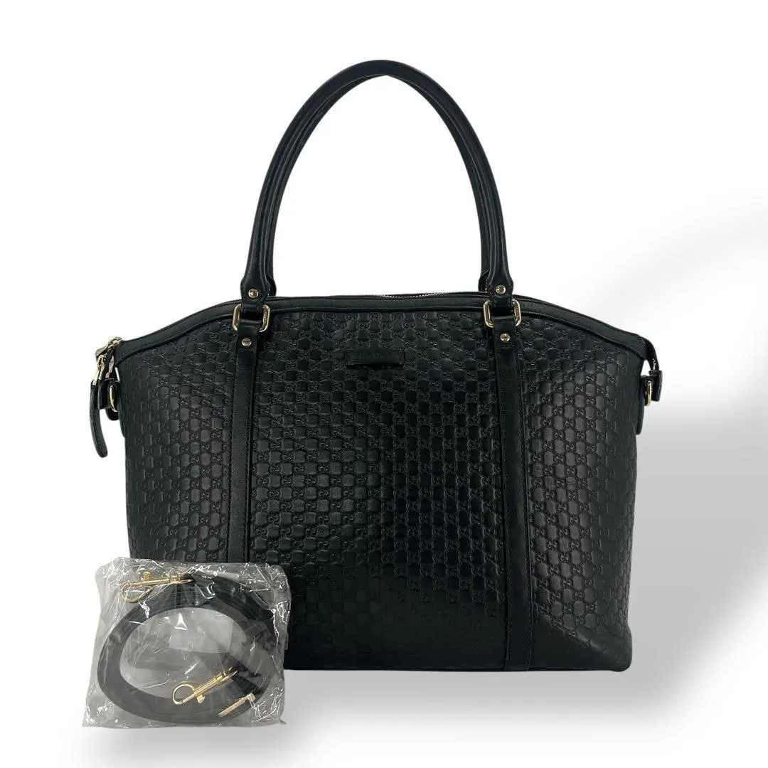 グッチ マイクロシマ 2way ショルダーバッグ トートバッグ レザー ブラック