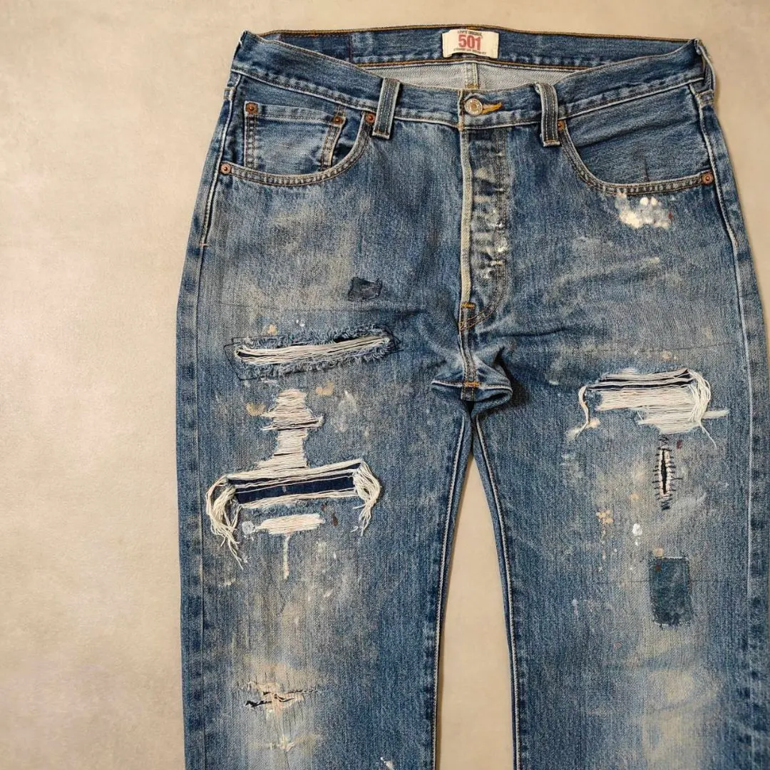 ビンテージ リーバイス 501 w35 パッチワークデニム グランジ ダメージ