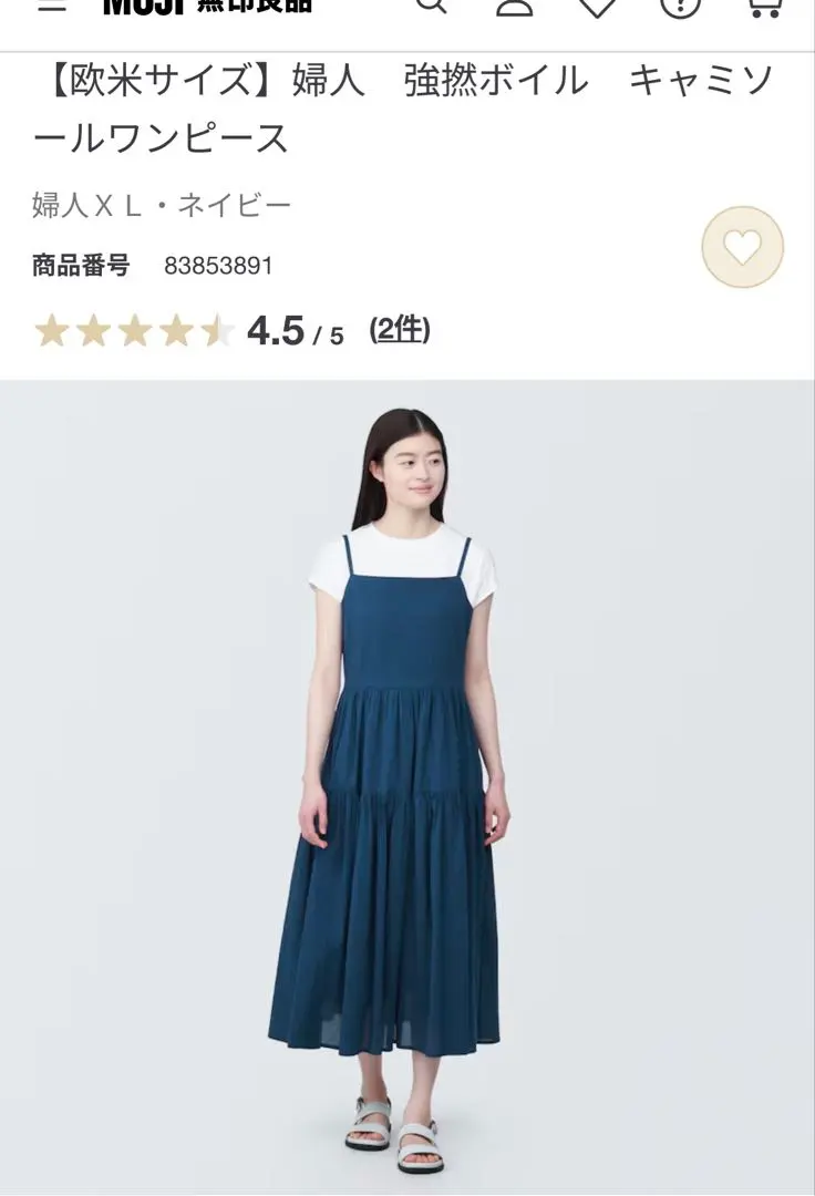 MUJI ネイビー キャミソールワンピース 欧米サイズ