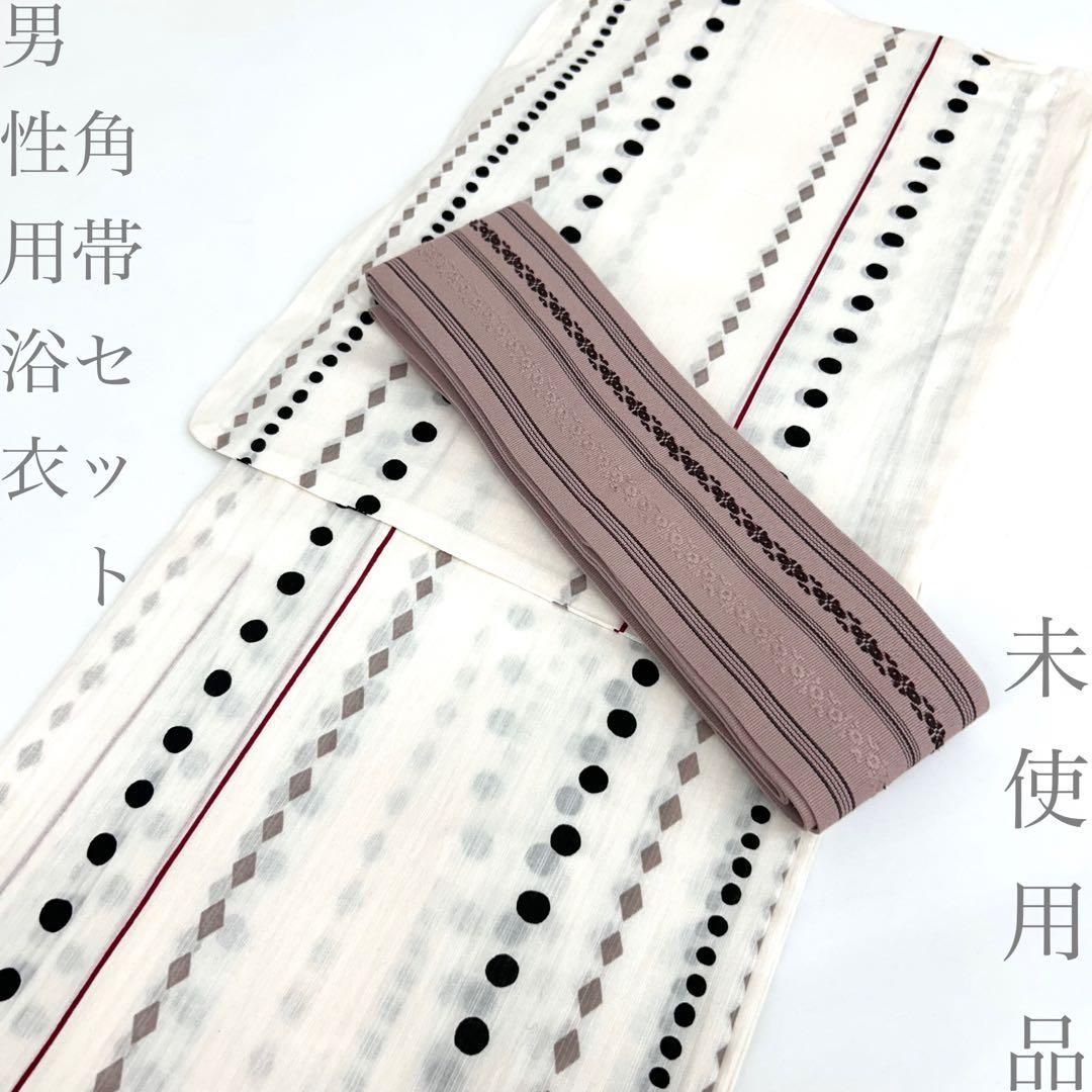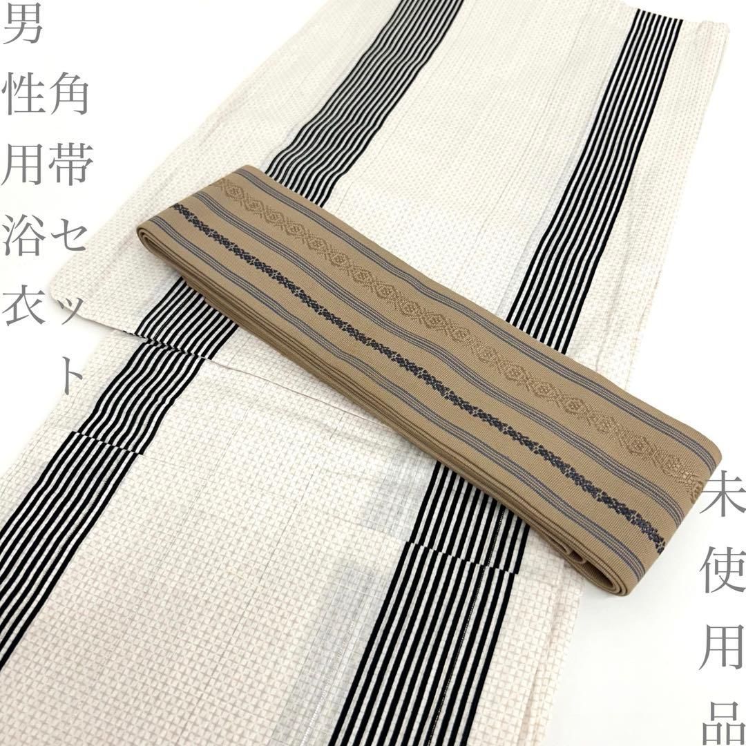 【着物と帯 時流】Y26299◆男性用浴衣角帯セット◆メンズ未使用 白ベージュ