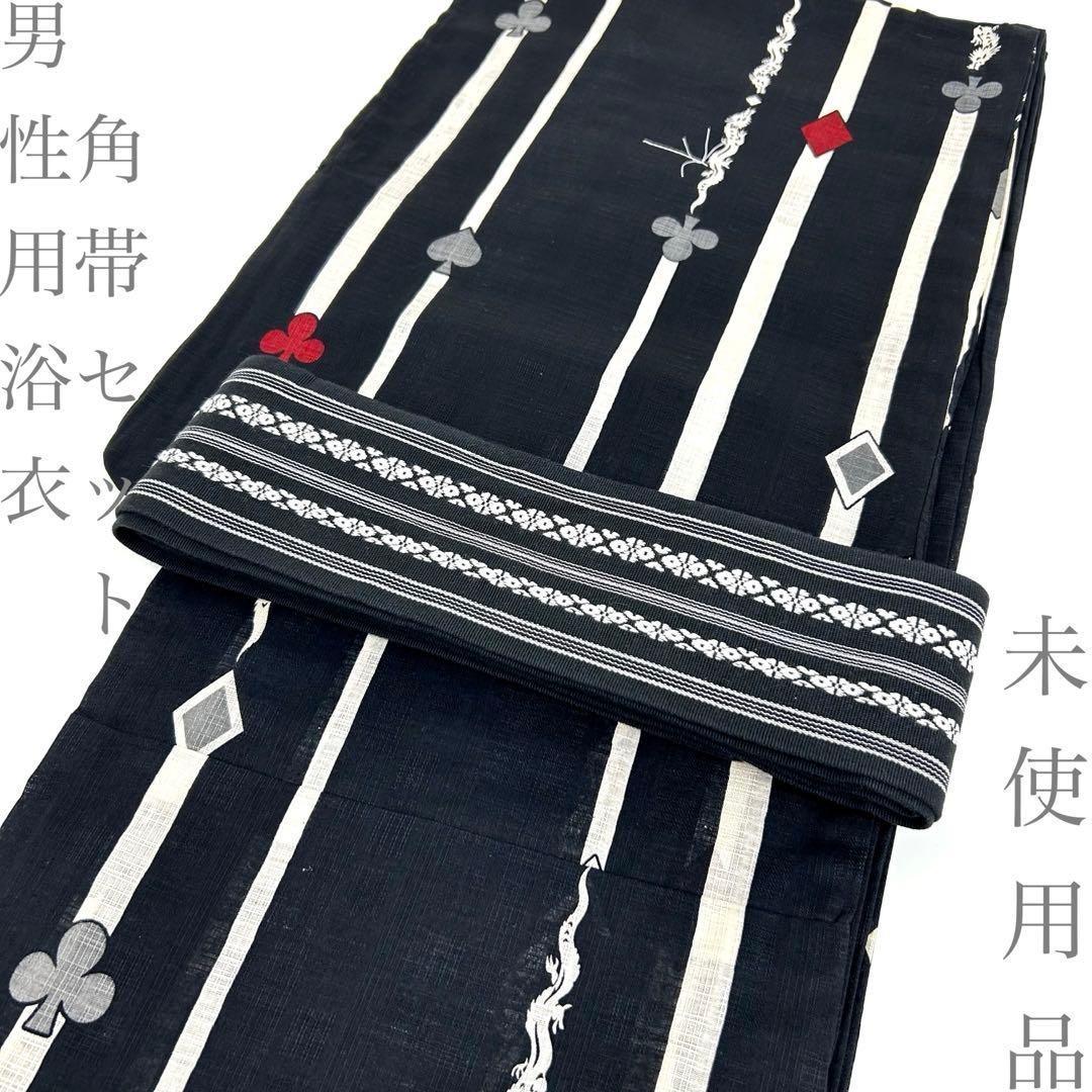 【着物と帯 時流】Y26300◆男性用浴衣角帯セット◆未使用品 トランプ龍 黒