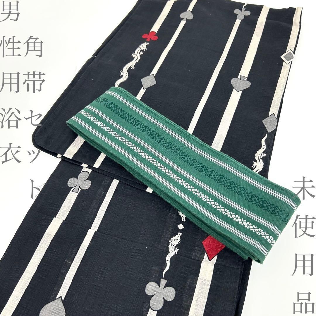 【着物と帯 時流】Y26301◆男性用浴衣角帯セット◆未使用品 トランプ龍 黒緑