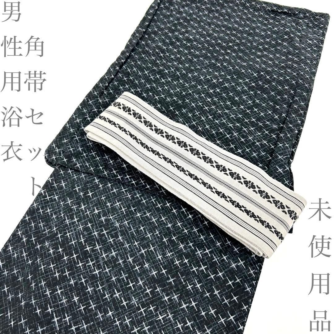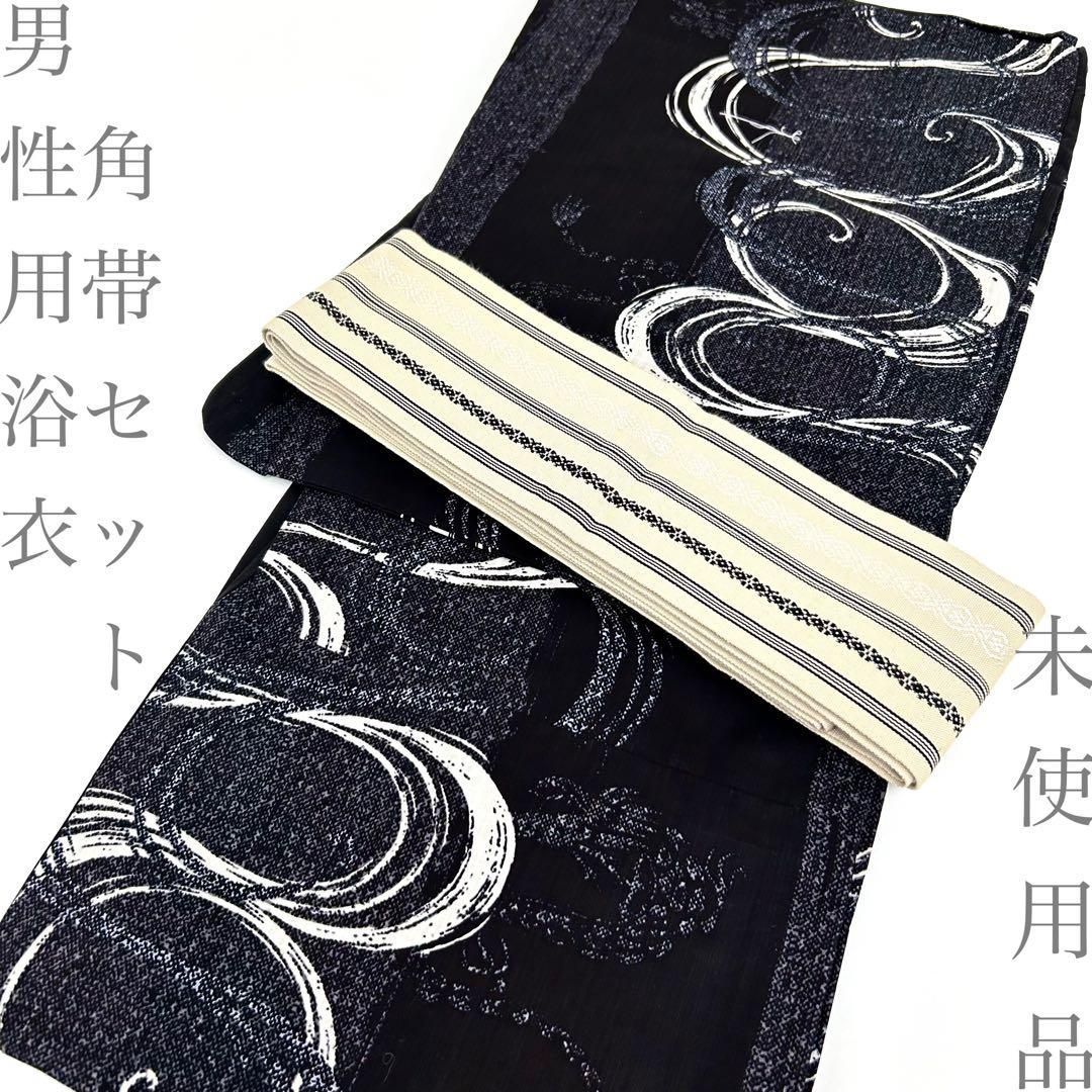 【着物と帯 時流】Y26305◆男性用浴衣角帯セット◆メンズ浴衣 未使用 黒