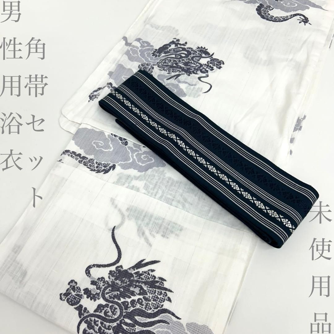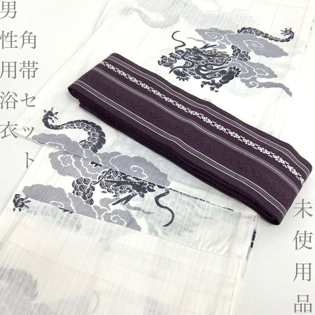 【着物と帯 時流】Y26303◆男性用浴衣角帯セット◆メンズ浴衣 未使用 龍白