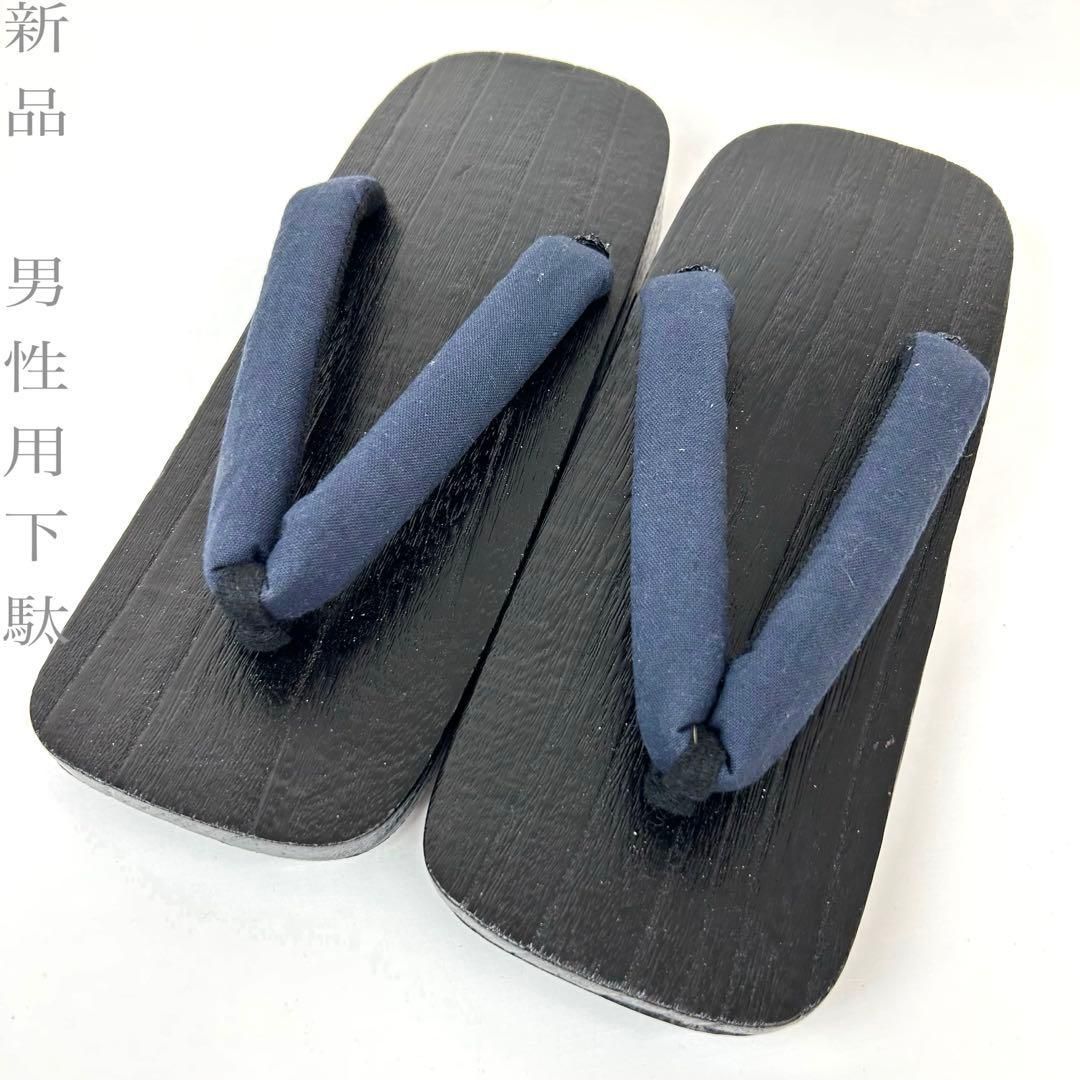 【着物と帯 時流】M26306◆男性用 桐下駄◆焼桐下駄 紺 無地鼻緒 未使用