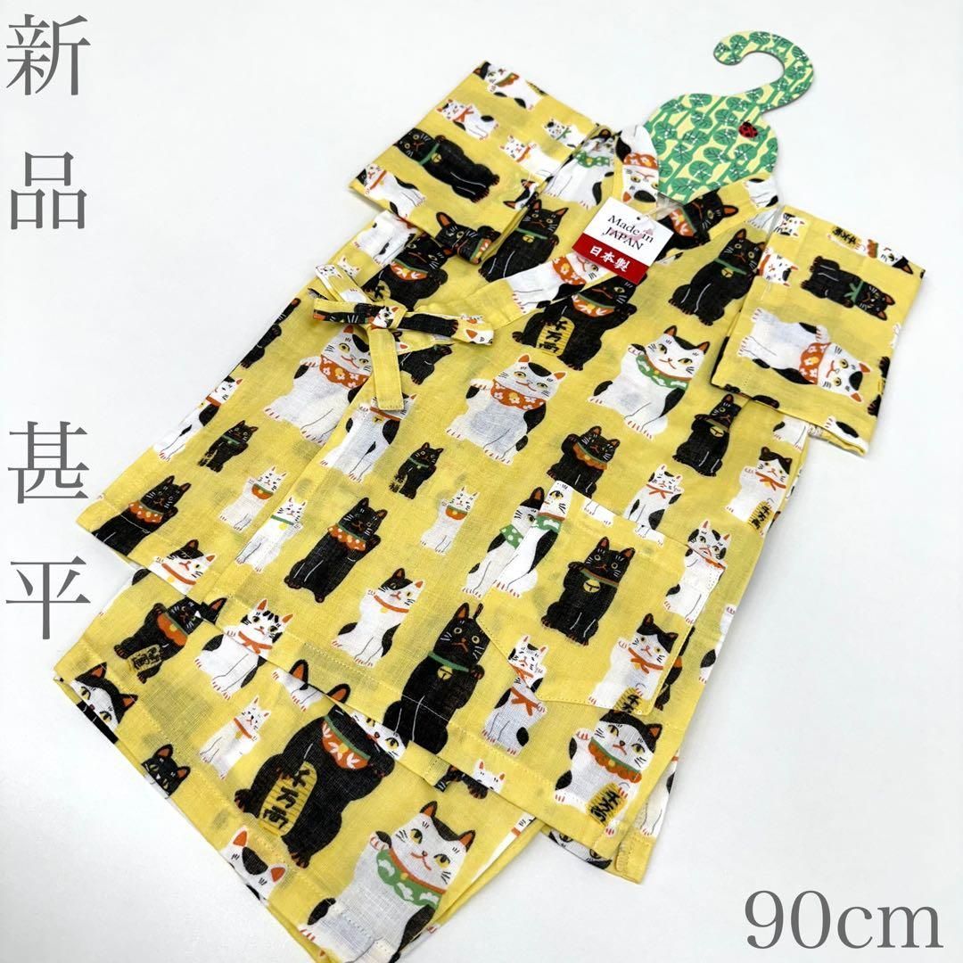 【着物と帯 時流】Y26314◆新品 甚平◆ 1〜2歳用 90㎝ ベビー 猫