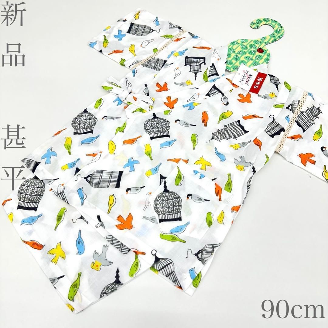 【着物と帯 時流】Y26315◆新品 甚平◆ 1〜2歳用 90㎝ ベビー 小鳥