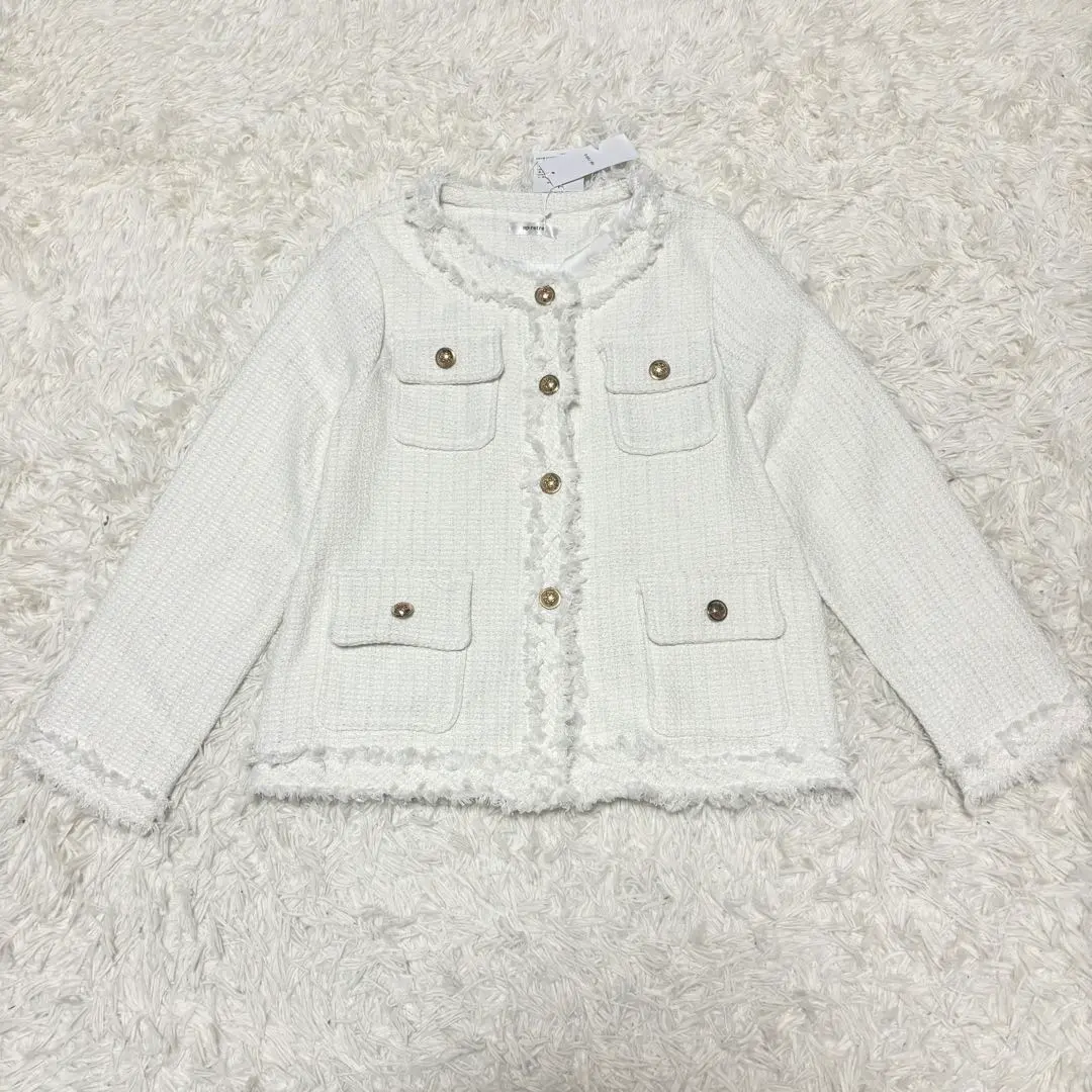 新品タグ付き アプレトロ ツイードジャケット 金ボタン フリンジ ノーカラー
