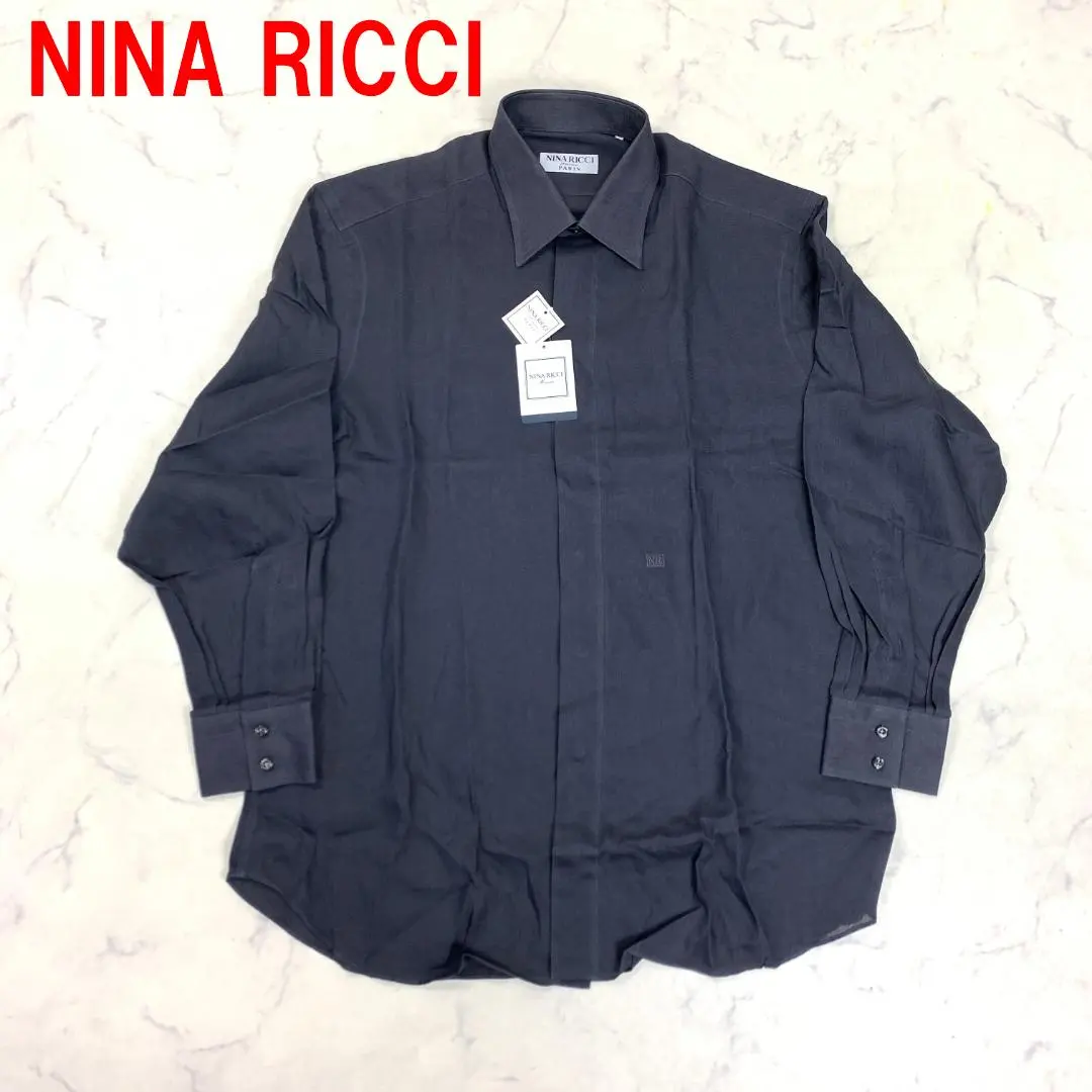 A7070 新品タグ付き ニナリッチ 長袖シャツ リネン 紺 ネイビー L