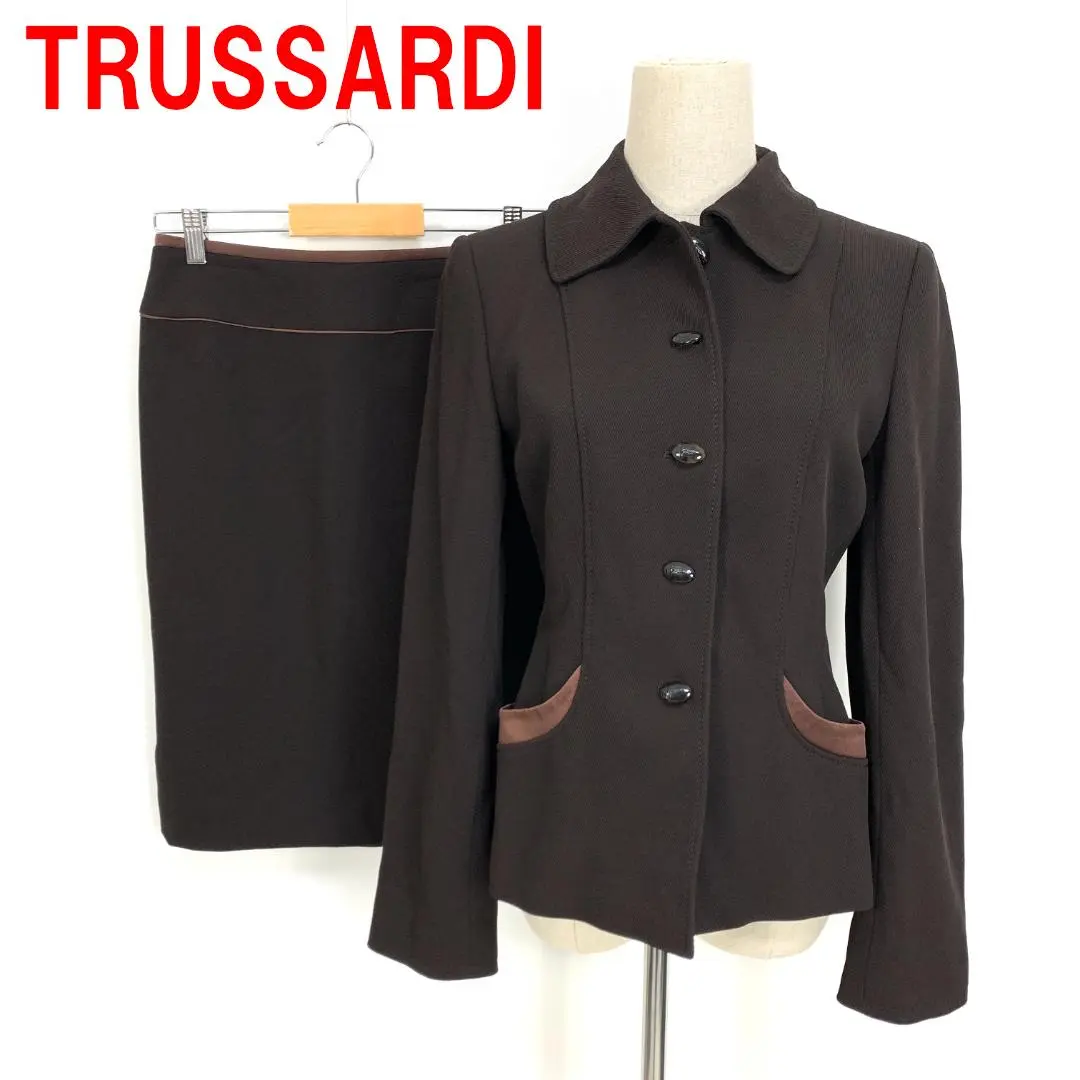 A7041 トラサルディ スカートスーツセット ウール 裏地あり 茶色 40