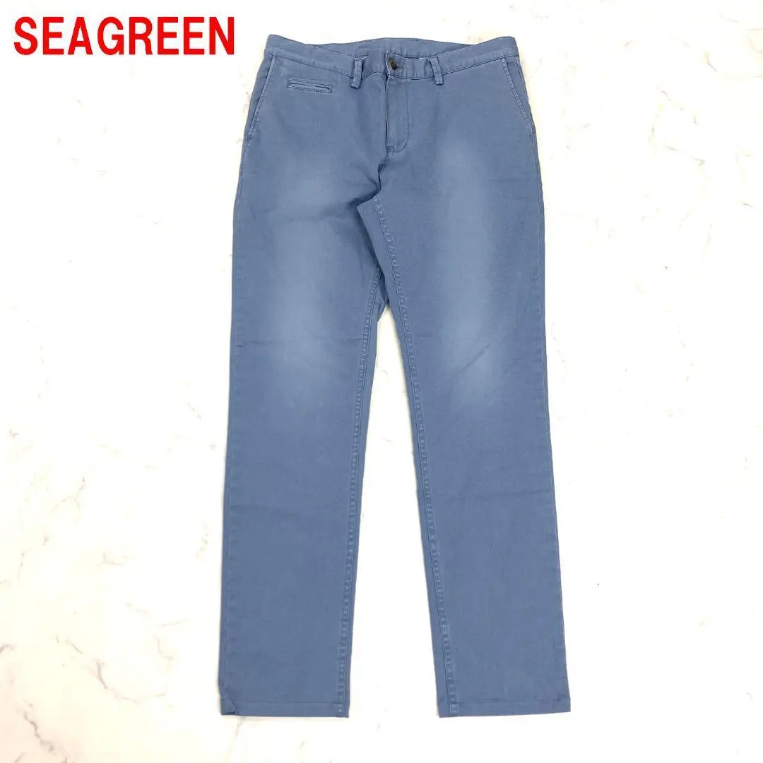 A6273 シーグリーン チノパン 綿 コットン ストレート 水色 青 3