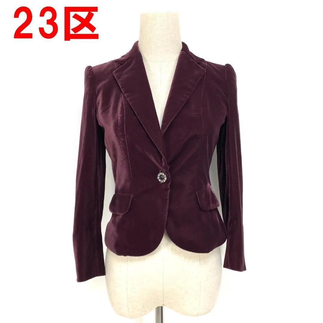 A6128 23区 テーラードジャケット 裏地あり ベロア ワインレッド 32
